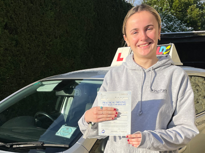 Lilly B 1st time pass I started lessons again having not driven since I was 17. I was very nervous and cautious but after lessons with Alison my confidence and skills grew and despite a year’s delay due to COVID-19 I was finally able to take my test and passed first time. I will now forever recite “tyres and tarmac” when stopping behind another vehicle. Thanks Alison.